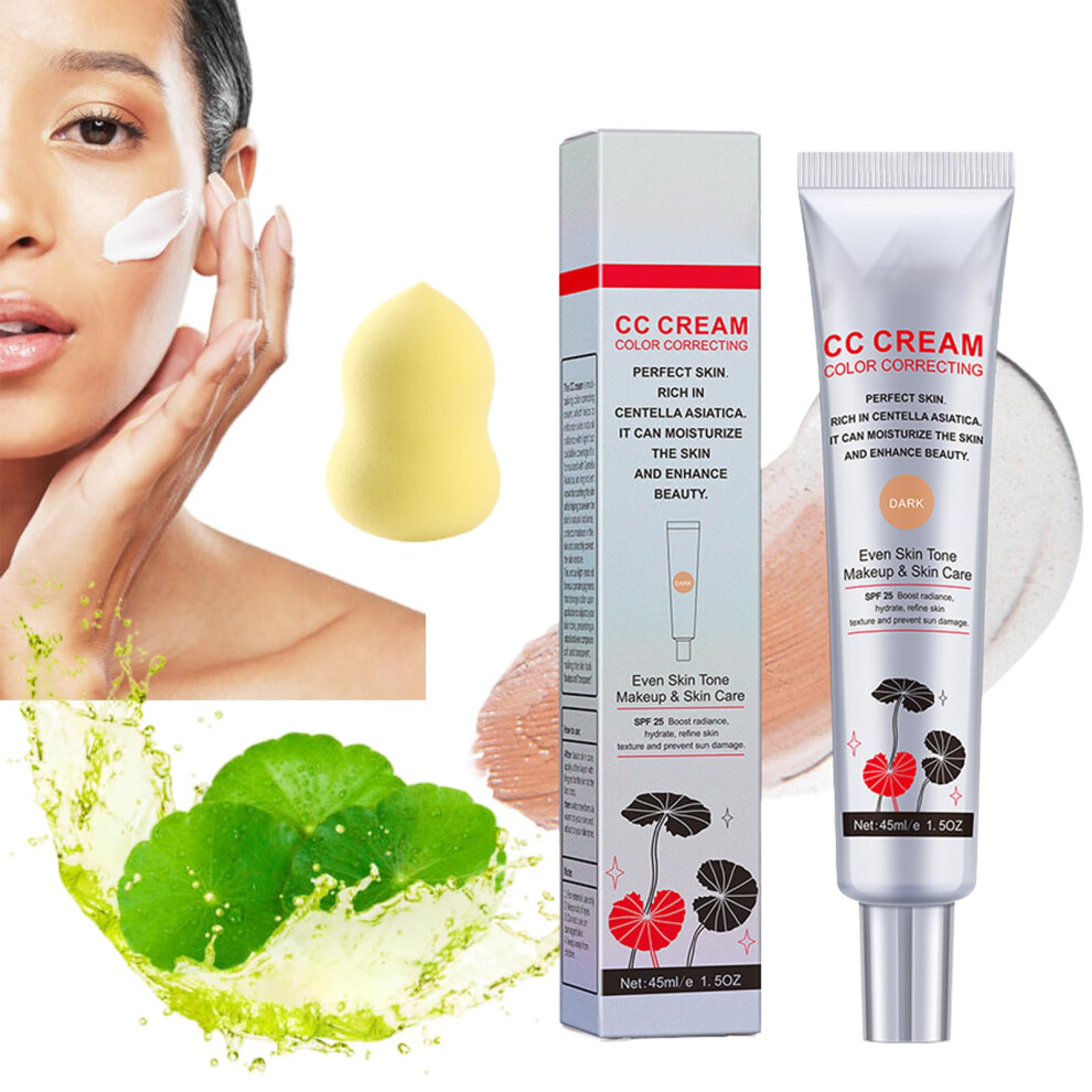 Color Correcting CC Cream with Centella Asiatica Full-Coverage Foundation Color Correcting Cream with SPF 25 Even Skin Tone Hydrating Cream