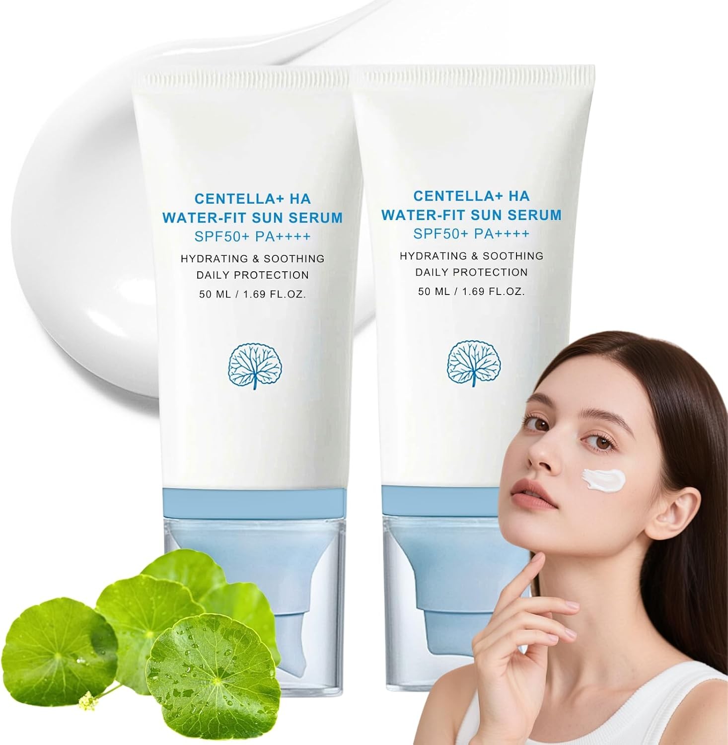 (2PCS) Centella Sunscreen SPF50, Centella Water-Fit Sun Serum, Nourishing Skin Long-Lasting Protection and UV Defens, Lightweight Hydrating SPF50 Cent