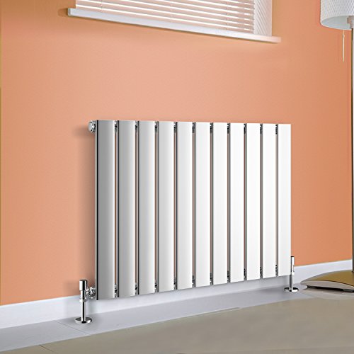 NRG 600x1020mm Horizontal Flat Panel Designer Bathroom Central Heating Radiator Gloss White Double Column - Perfect for Bathroom, Bedroom, Kitchen, Hallway, Living Room