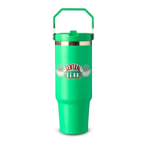 Friends Central Perk Insulated Travel Tumbler with Handle & Straw Lid 850ml – Double Wall Stainless Steel Hot & Cold Drinks Cup, Official Friends TV Series Coffee Cup Flask