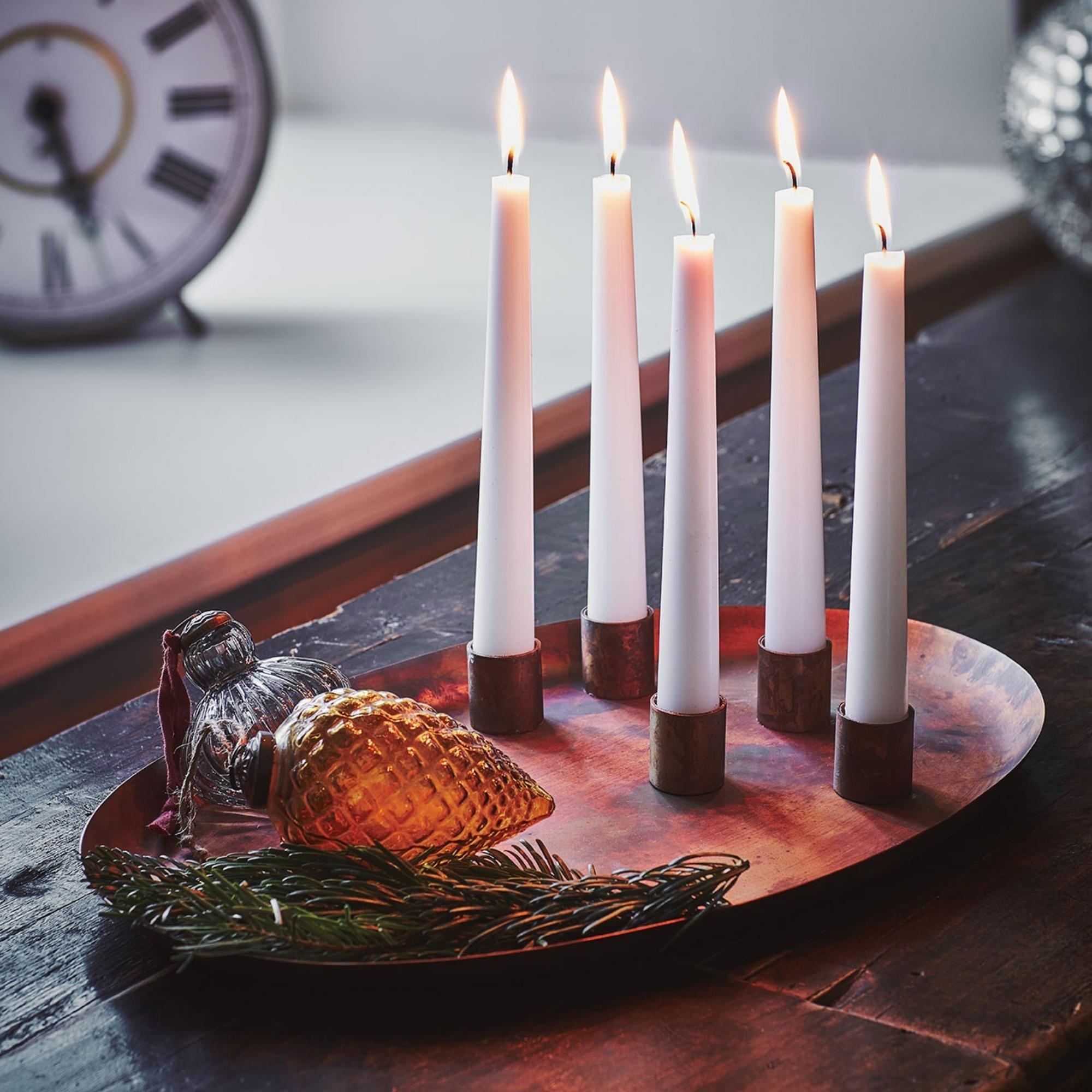 Copper Oval Centrepiece Metal with Magnetic Candle Holders H3Cm W40Cm D26Cm