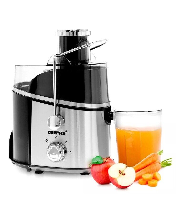 Geepas Juice Extractor, Centrifugal Juicer Machine - Whole Black & Silver