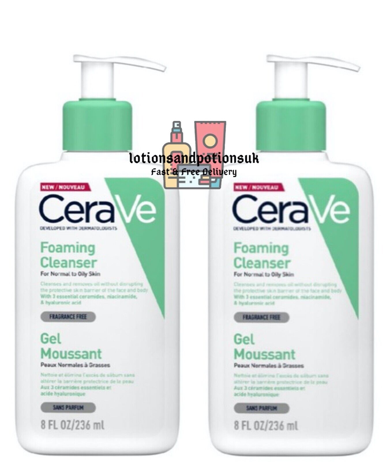 2X CeraVe Foaming Cleanser Daily Face & Body Wash 236ml New Sealed