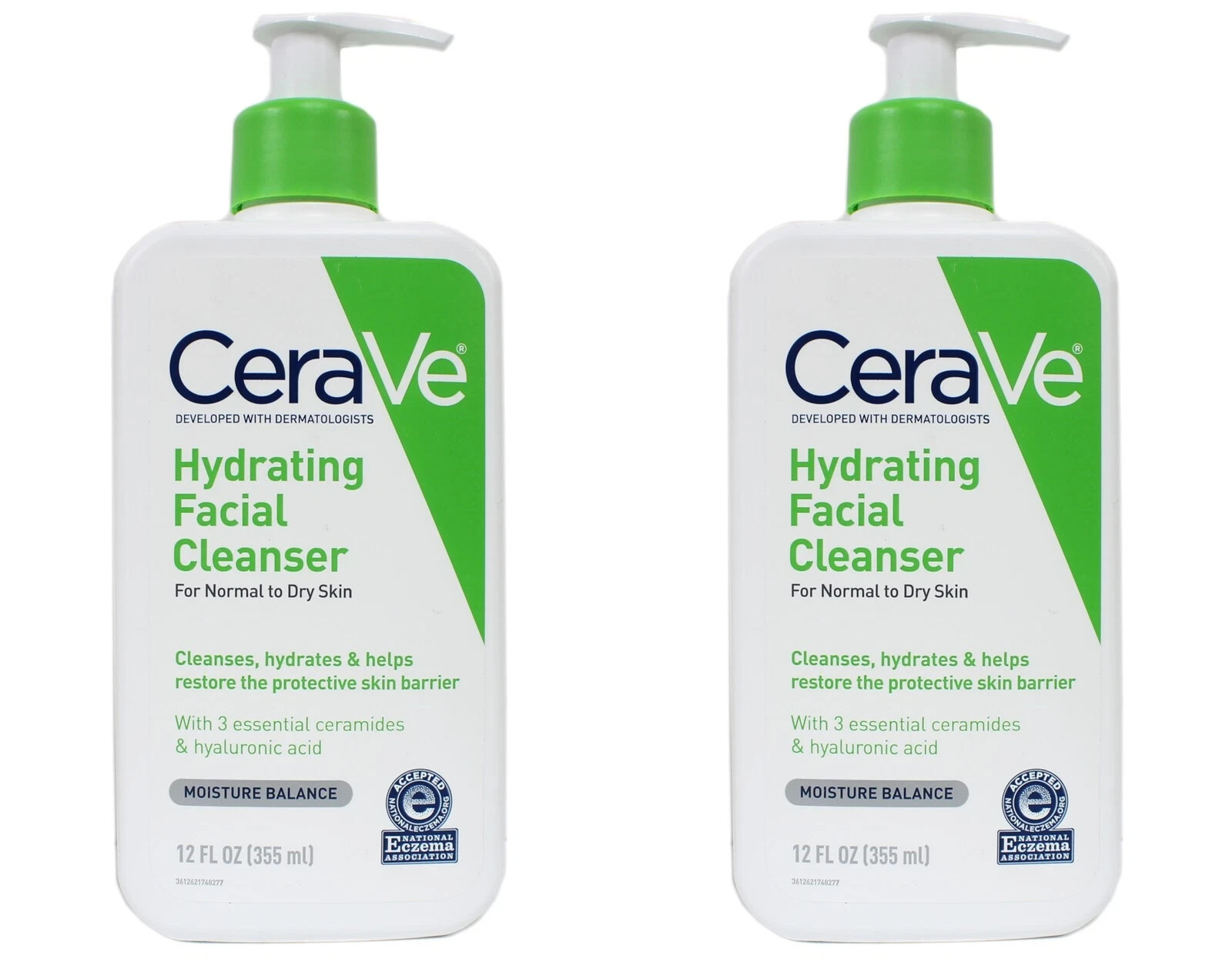 CeraVe Hydrating Facial Cleanser for Normal to Dry Skin 12 Oz - 2 PACKS LOT