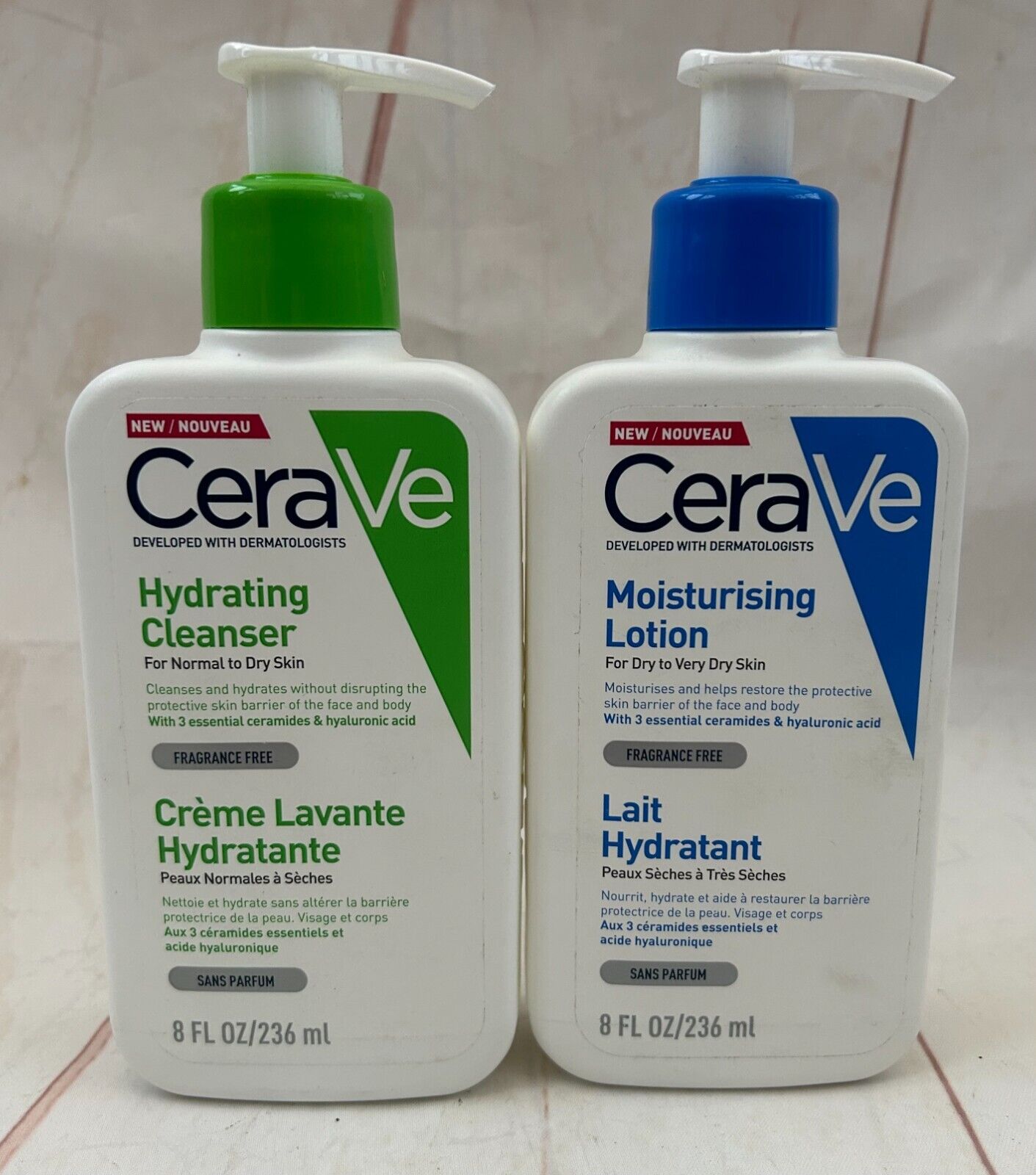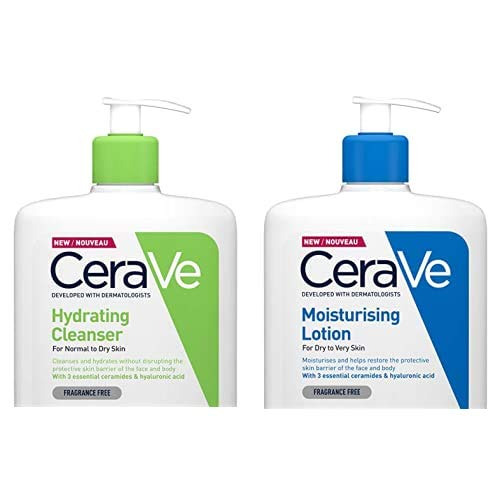 CeraVe Hydrating Cleanser + Moisturising Lotion 473ml | Face & Body Skincare Set