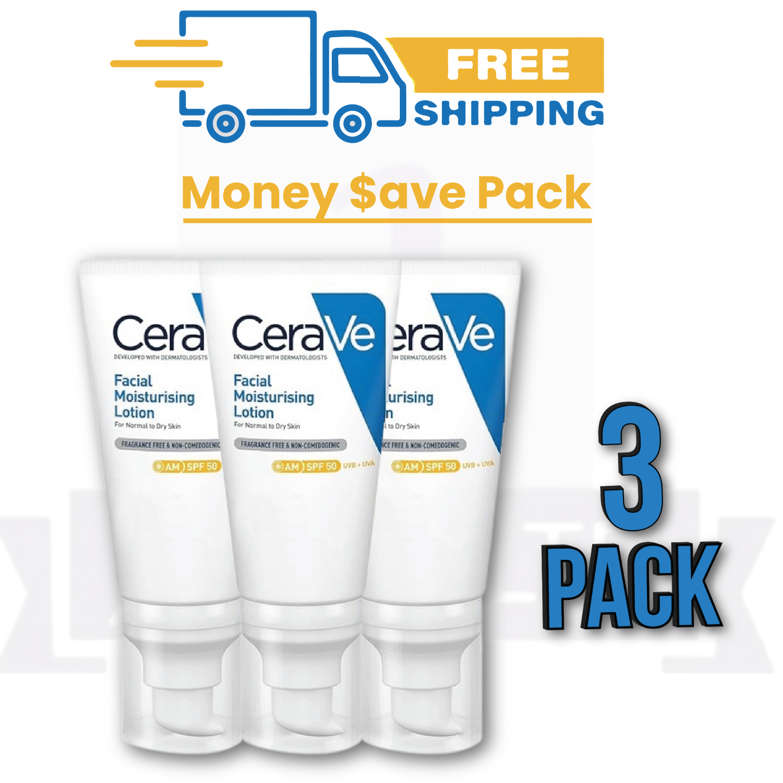 3X Cerave Facial Moisturising Lotion Am Spf50 52ml - 3 PACK