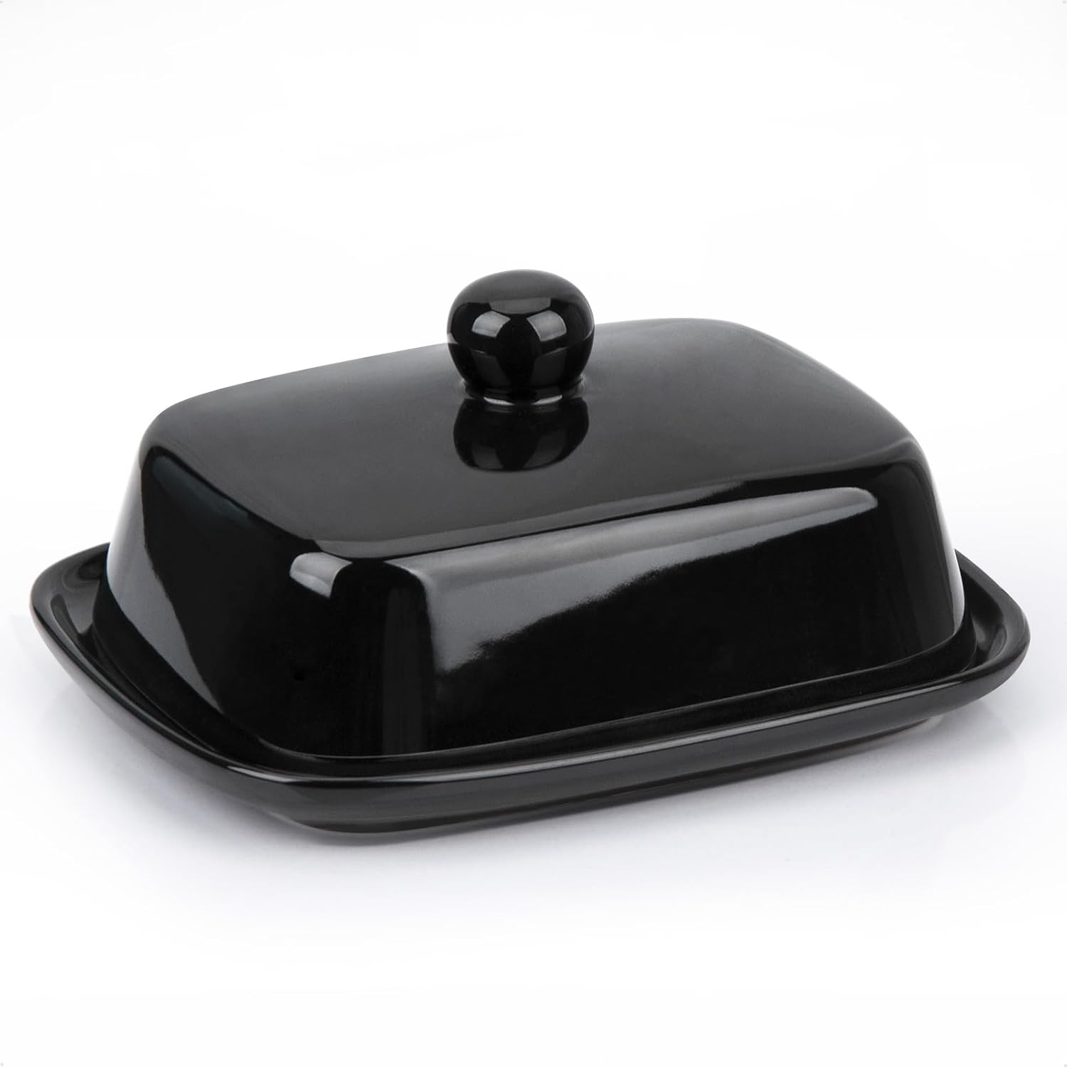 Black Ceramic Butter Dish with Lid, Small Porcelain Butter Dish for Countertop,
