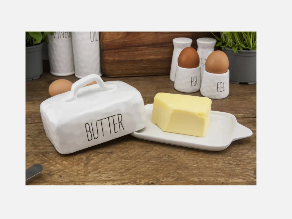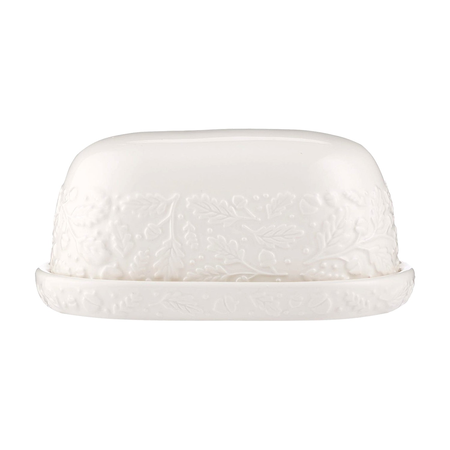 Cooksmart British Designed Ceramic Butter Dish with Lid | Large Butter Dish for All Types of Kitchens | Butter Dishes for All Sizes of Butter - Homestead, White/Light