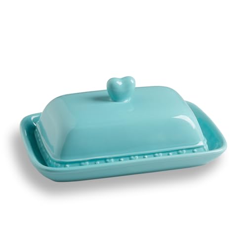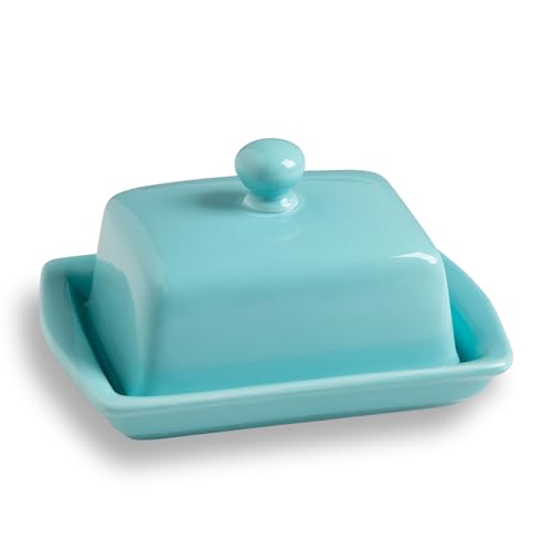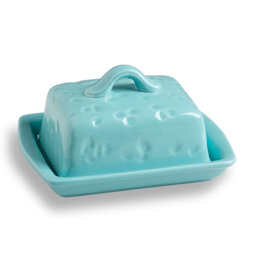 Sweejar Home Ceramic Butter Dish with Lid,Cheese-Shaped Butter Holder,Cute Butter Dish for Countertop,Kitchen Deco & Butter Storage(Turquoise)