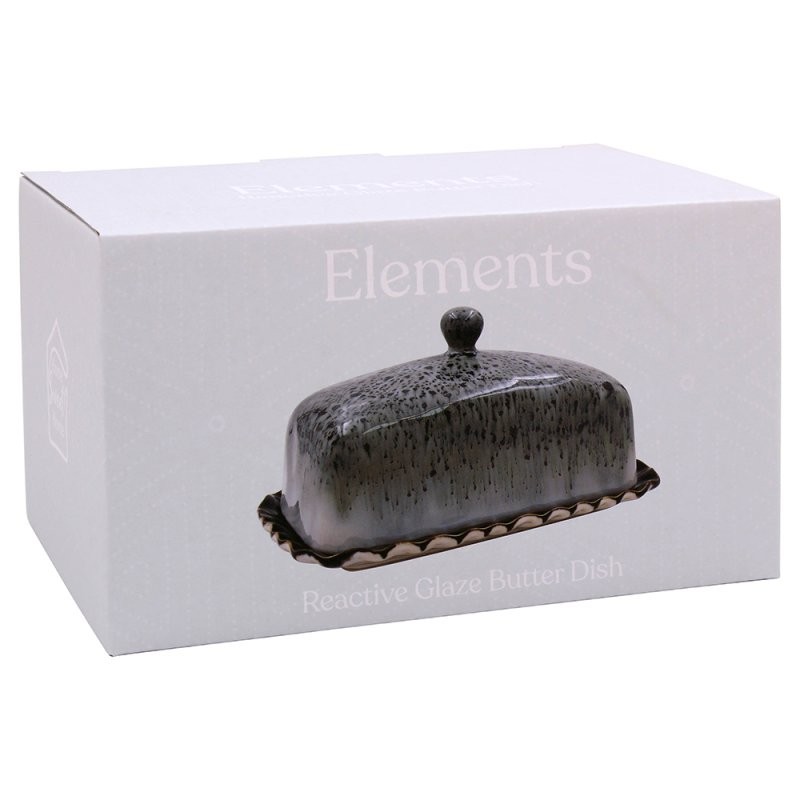 Ceramic Butter Dish Grey Reactive Glaze Platter & Lid Speckled Vintage Design