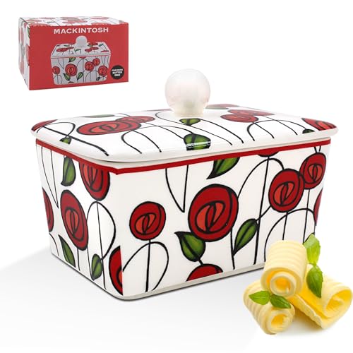 The Leonardo Collection Mackintosh Butter Dish by Charles Rennie Mackintosh | Elegant Ceramic Covered Butter Dish with Art Nouveau Design | Perfect for Everyday Use or Display | Timeless Home Décor