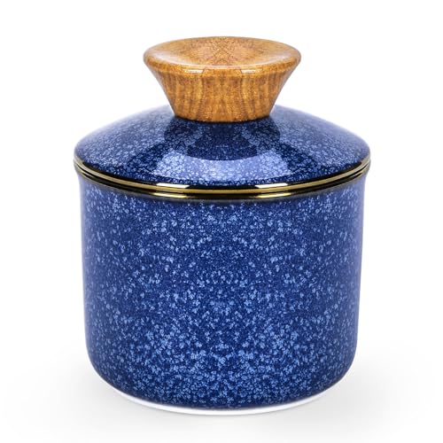 DOWAN Butter Dish with Lid - Ceramic Butter Crock - Keeps Butter Fresh, Soft and Spreadable - French Butter Keeper with Water Line - Reactive Blue