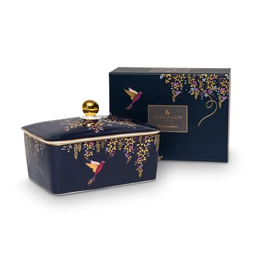 Portmeirion x Sara Miller London Butter Dish - Navy Blue Ceramic Butter Dish with Lid, 22ct Gold Detailing, Suitable Gift for Farmhouse and Kitchen Lovers