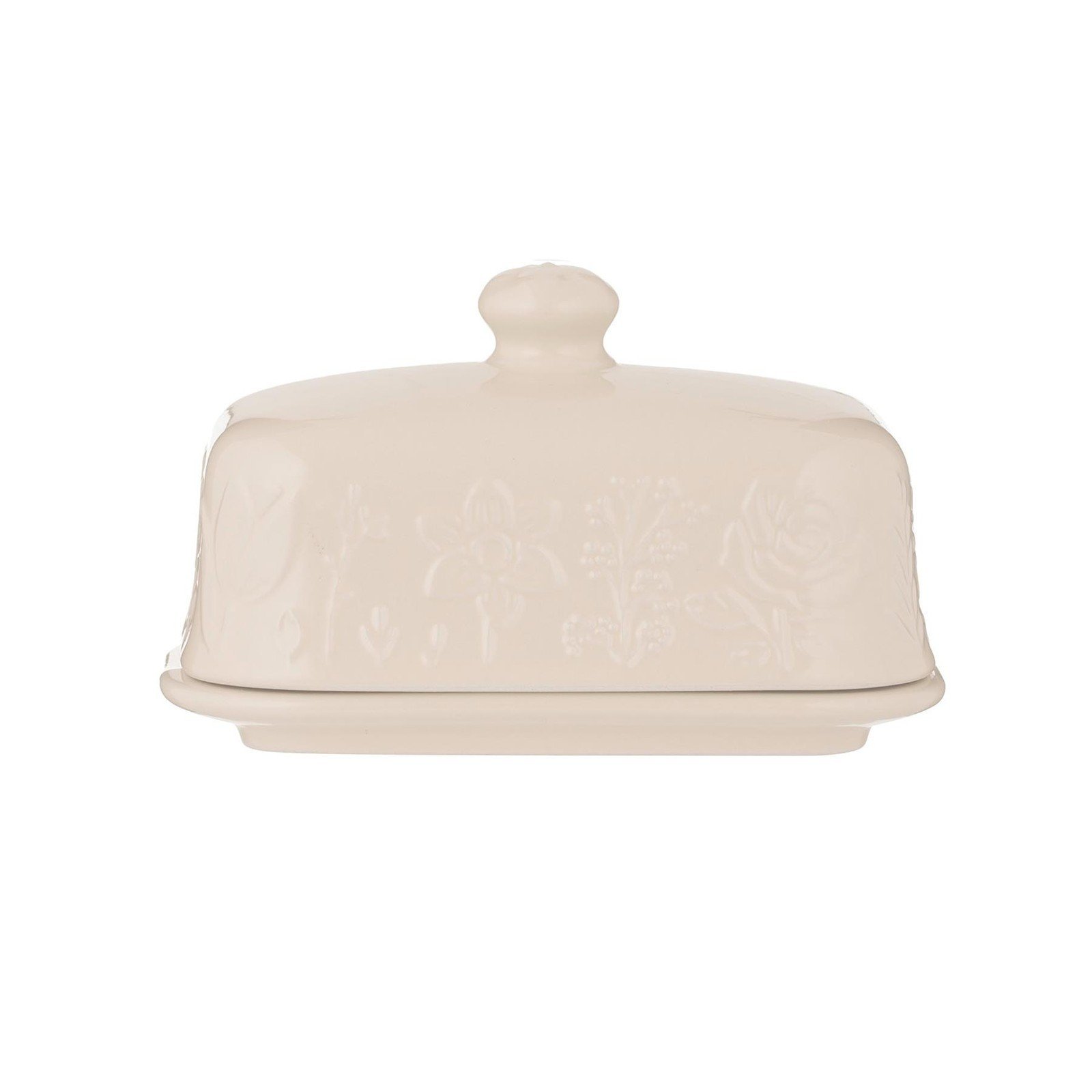 Price & Kensington Daisy Ceramic Butter Dish Petal Embossment & Cream Glaze