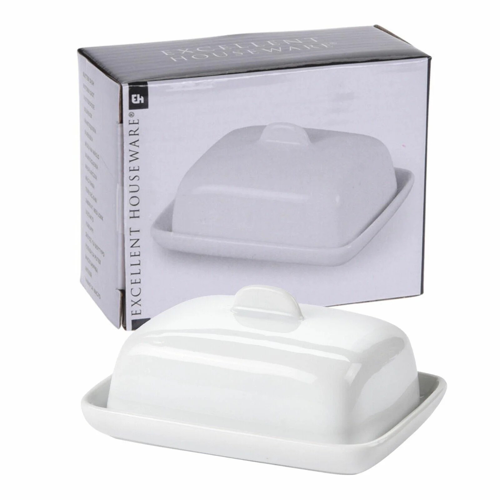 Excellent Houseware (1 Dish) 1/2 Mini Ceramic Butter Dish & Lid White Porcelain