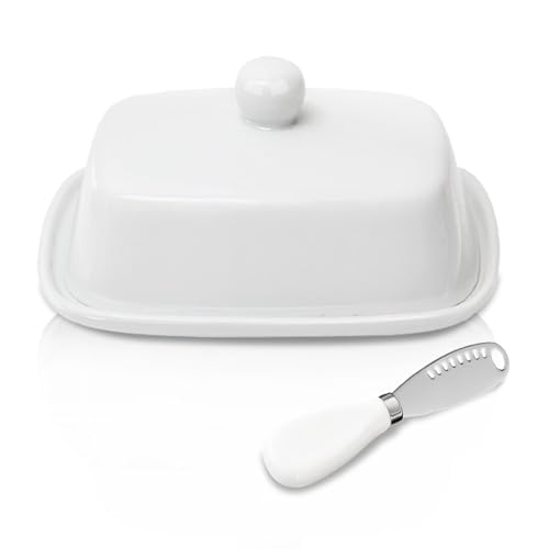 Flexzion Ceramic White European Butter Dish with Lid for Extra Large,