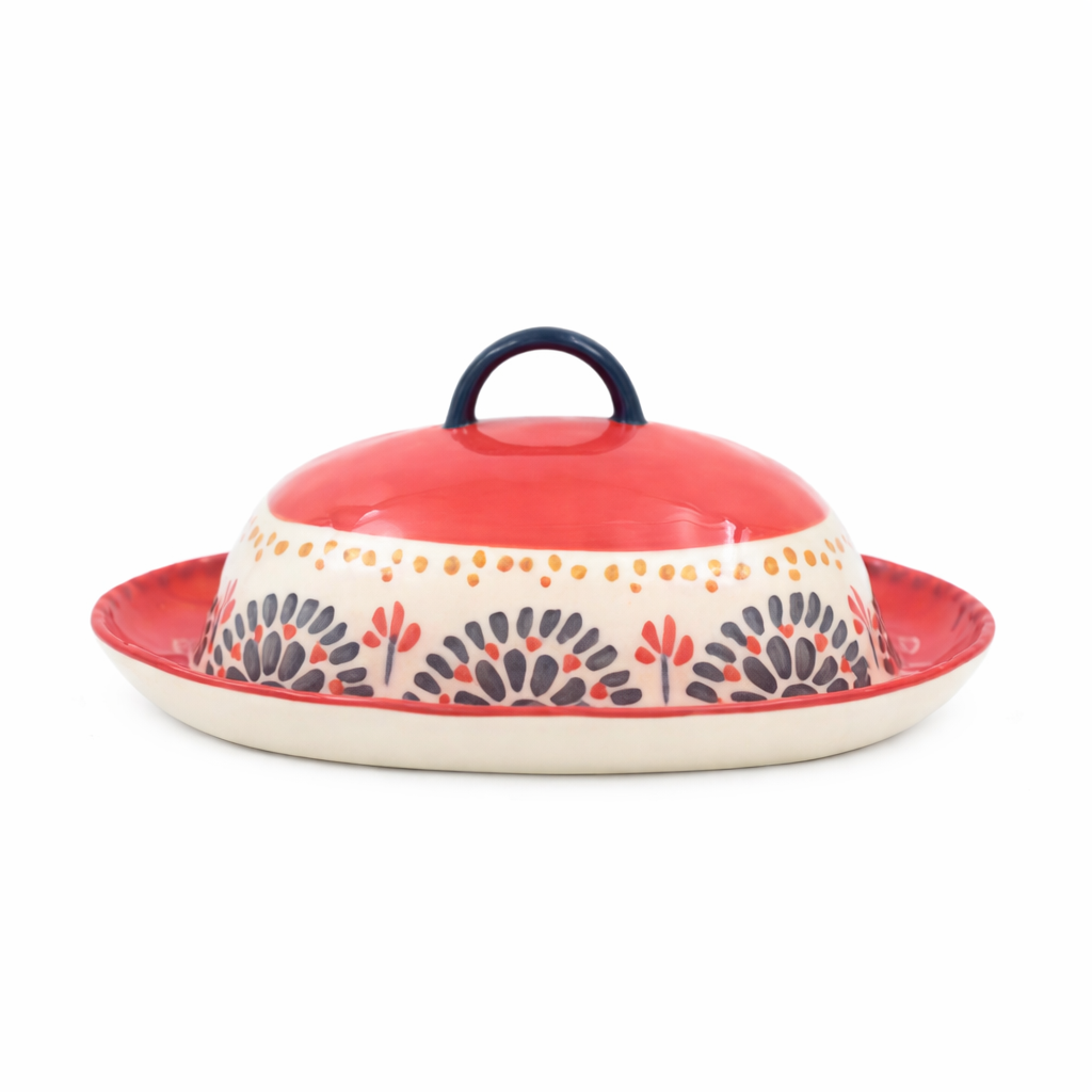 Hand Painted Ceramic Oval Butter Dish with Lid for Kitchen 20.5cm X 9cm