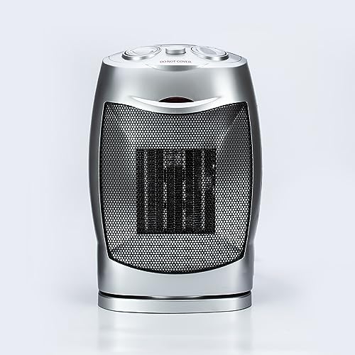 STATUS Oscillating Ceramic PTC Fan Heater 1500 W, Silver Portable Heater with 2 Heat Settings + Fan Only Mode, Adjustable Thermostat, Safety Cut‑Off, (CFH‑1500W1PKB6)