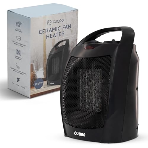 CUQOO 2KW Ceramic Fan Heater - Fast, Energy-Efficient Electric Heater with 2 Heat Settings, Thermostat, Quiet, Portable Space Warmer for Home & Office