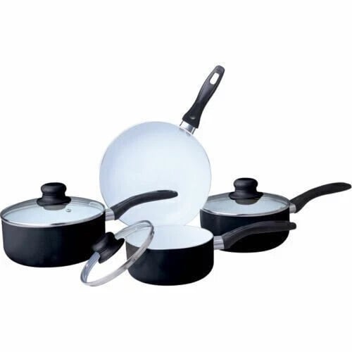 7Pc Ceramic Cookware Set Saucepan Pot Glass Lid Kitchen Fry Pan Frying Non Stick