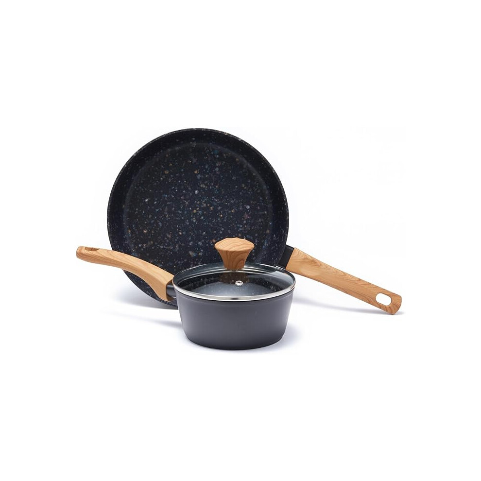 Small Non-Stick Frying Set, Frying pan & Saucepan with Lid,Ceramic Coated PFOA PTFE Free, (2-pcs, 24cm)