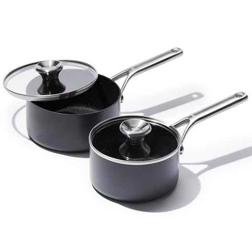 OXO Professional 1.7QT and 2.3QT Saucepan Pot Set with Lids Hard Anodized Ceramic Nonstick Cookware PFAS-Free Induction Suitable Stainless Steel