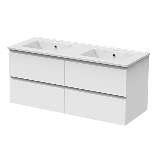 Robanmoa 1200mm Wall Hung Bathroom Vanity Units with Basin Bathroom Storage Cabinets Waterproof Cupboard Furniture Ceramic Vessel Sink 2-Drawer Wall Mounted Vanity Unit & Sink Suite