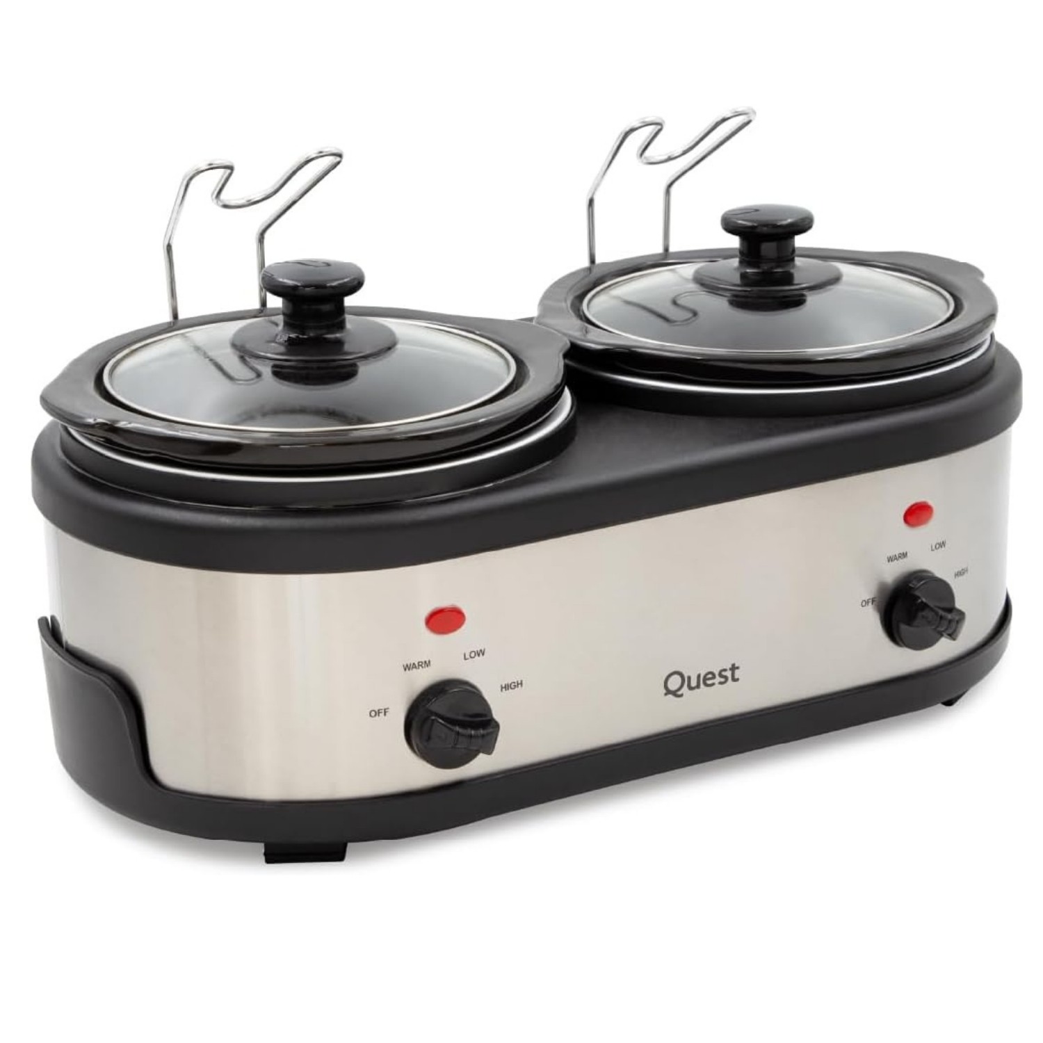 Quest Triple Slow Cooker, Buffet Server & Food Warmer, 7.5L Total Capacity - 3x 2.5 Litre Ceramic Pots, Easy to Clean, Includes Lids & Lid Stands, 3 Heat Settings