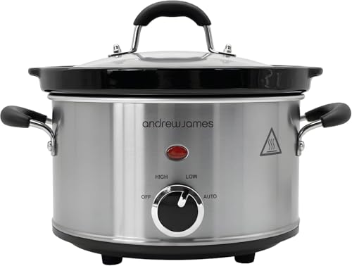 Andrew James 1.5L Slow Cooker - Roast-to-Rest – Compact Small Slow Cooker for 1–2 People with Oven-Proof Ceramic Pot, Easy-Clean Design, 3 Heat Settings & Glass Lid – Make Sauces, Soups & Small Meals