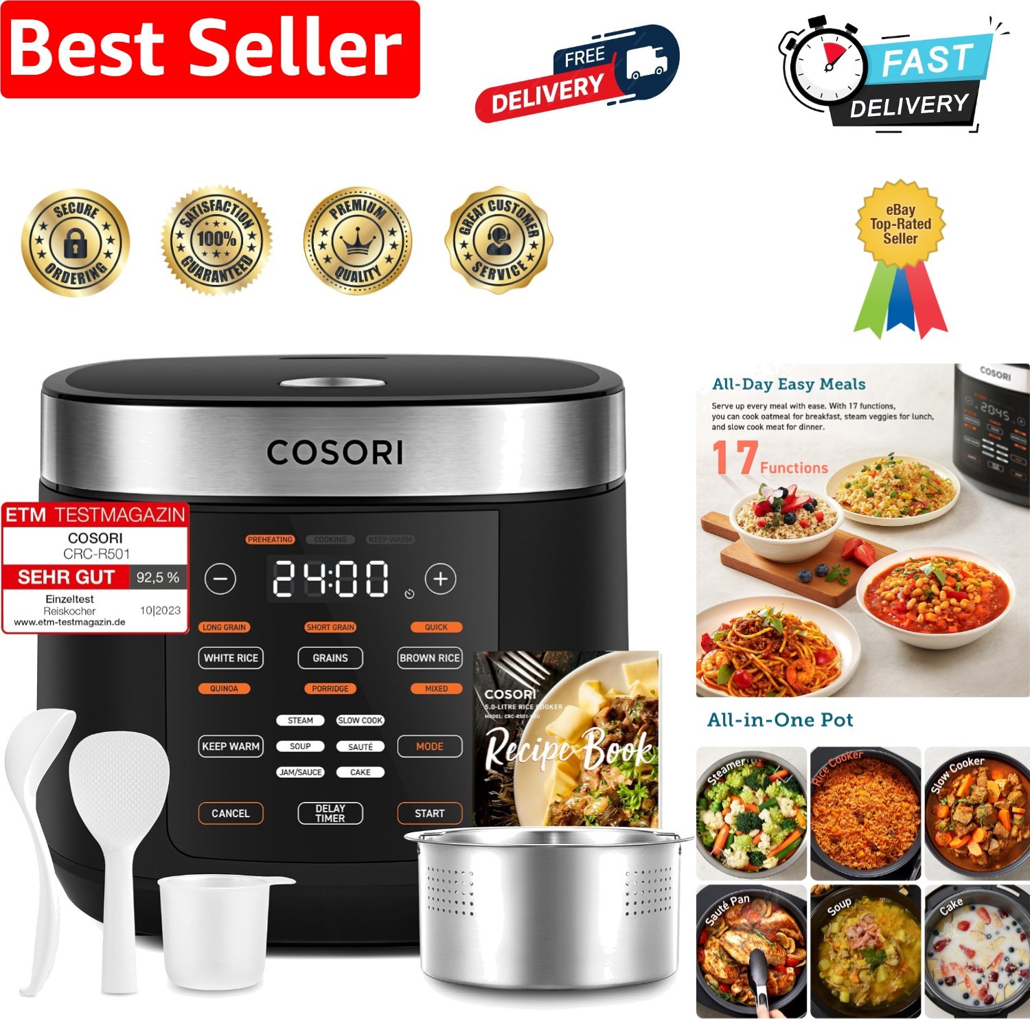 COSORI Rice Cooker, Slow Cooker & Steamer with Ceramic Coated Inner Pot and Fuzzy Logic, 50 Recipes,10 Cups, 5L Capacity, with 17 Functions, Warmer, Timer, Black