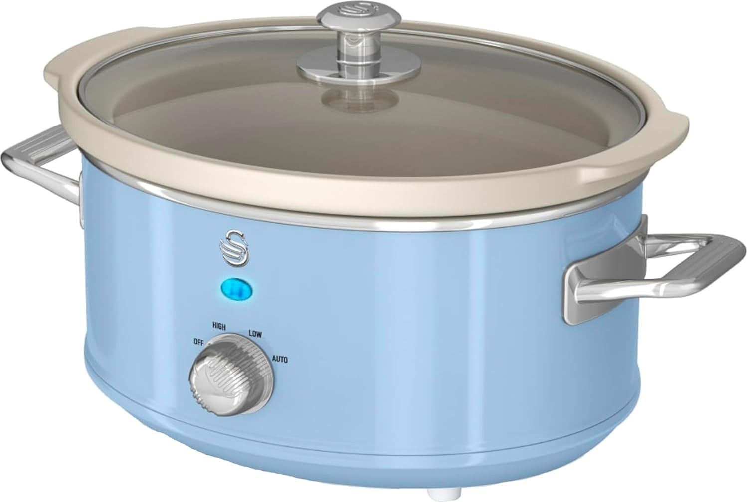 Swan Retro Slow Cooker with 3 Temperature Settings, Removable Dishwasher Safe Ceramic Pot and Glass Lid, 3.5L, Blue, SF17021BLN