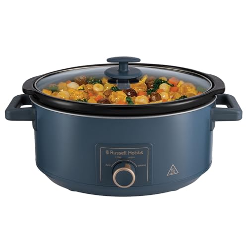 Russell Hobbs Slow Cooker 7 Litres [Removable Ceramic Pot & Glass Lid] Extra Large (Variable Temp, Dishwasher Safe, Dial Contol, Cool-Touch Handles, Family Size, Navy) 28780