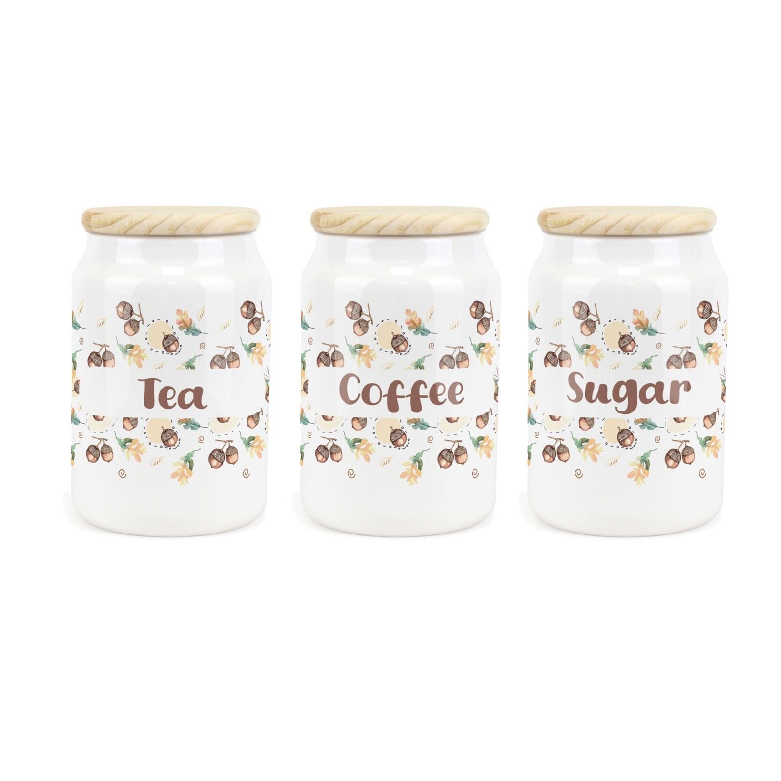 Ceramic Tapered Autumnal Acorns Canisters - Tea, Coffee & Sugar Containers