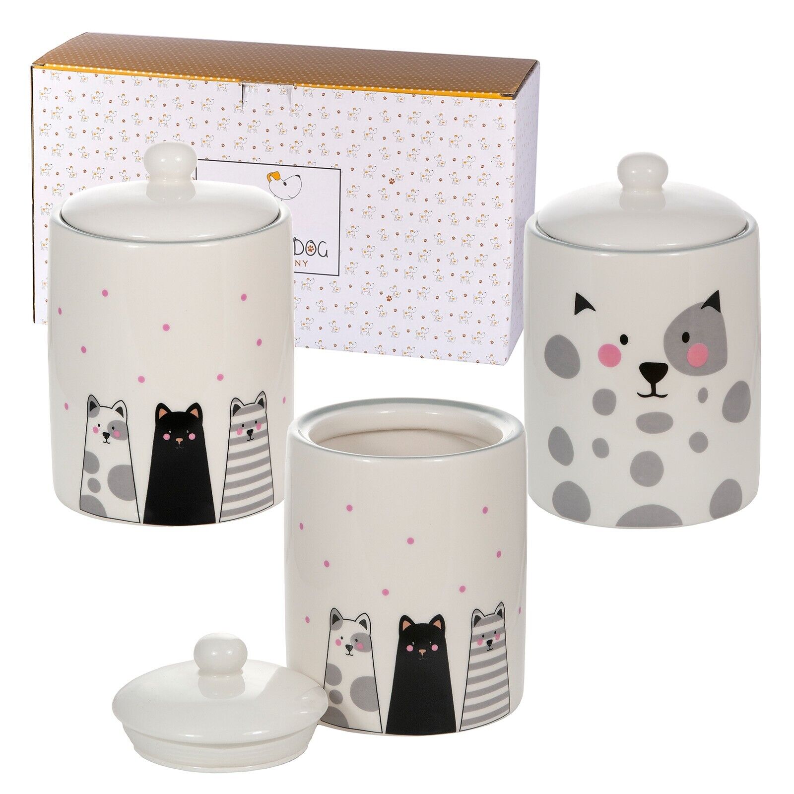 Ceramic Storage Jars Kitchen Canisters Container 3pc Tea Coffee Sugar Cat Themed
