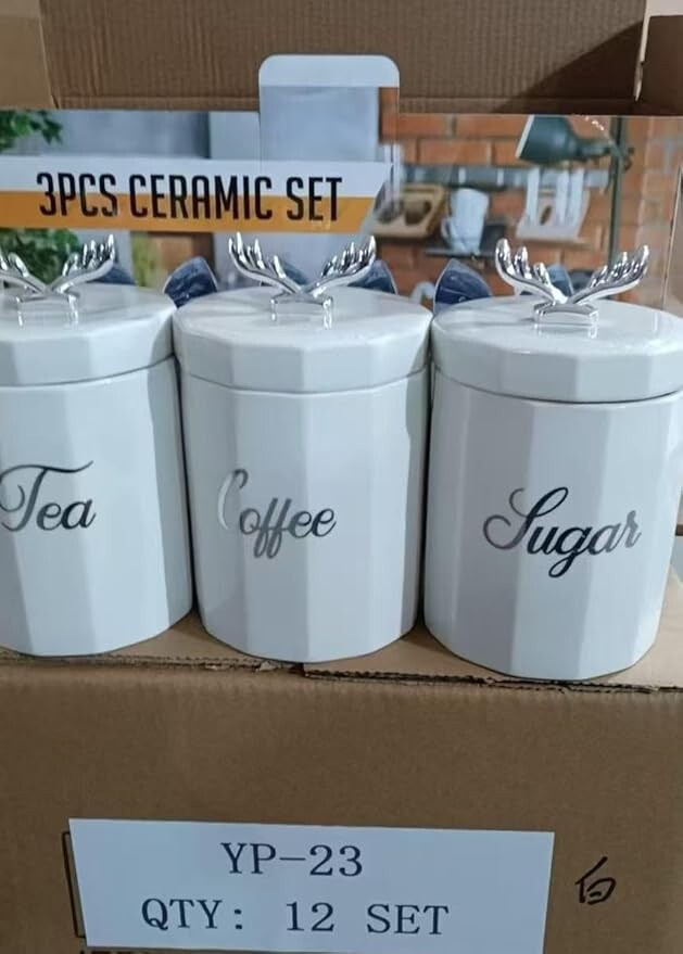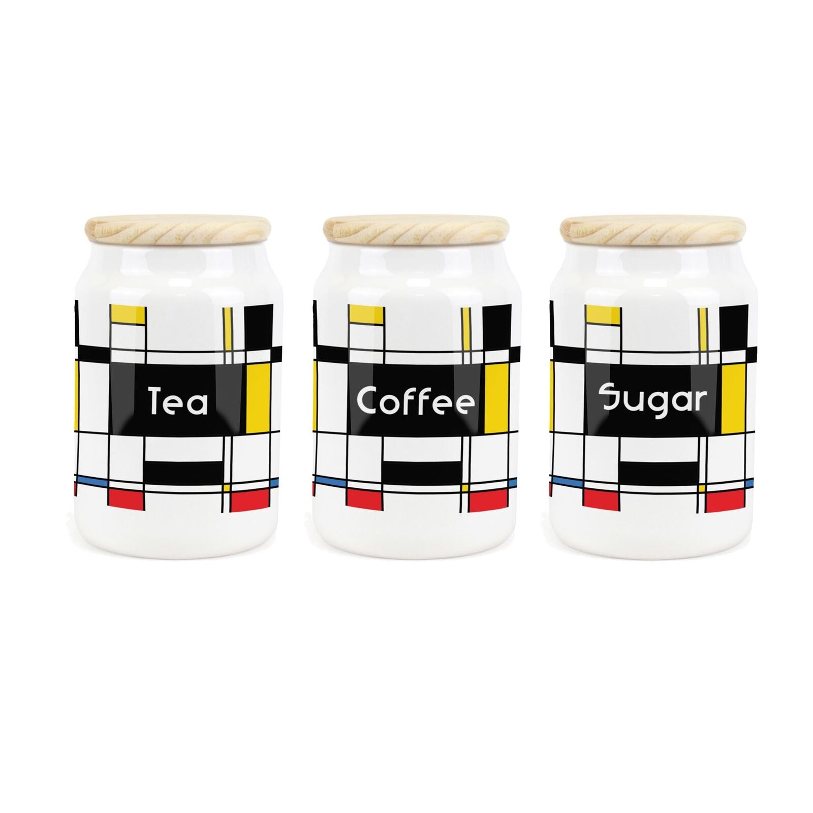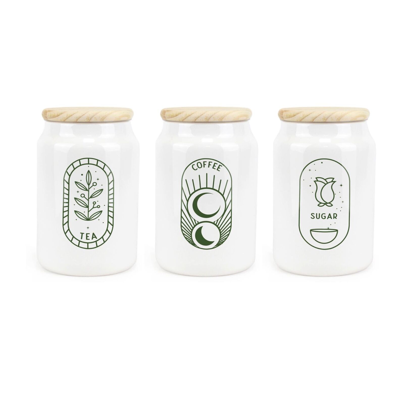 Cooksmart Ceramic TCS Canister | Tea Coffee Sugar Canisters For All Type Of Kitchens | Coffee And Tea Storage Jars With Modern Designs - Buttercup Farm