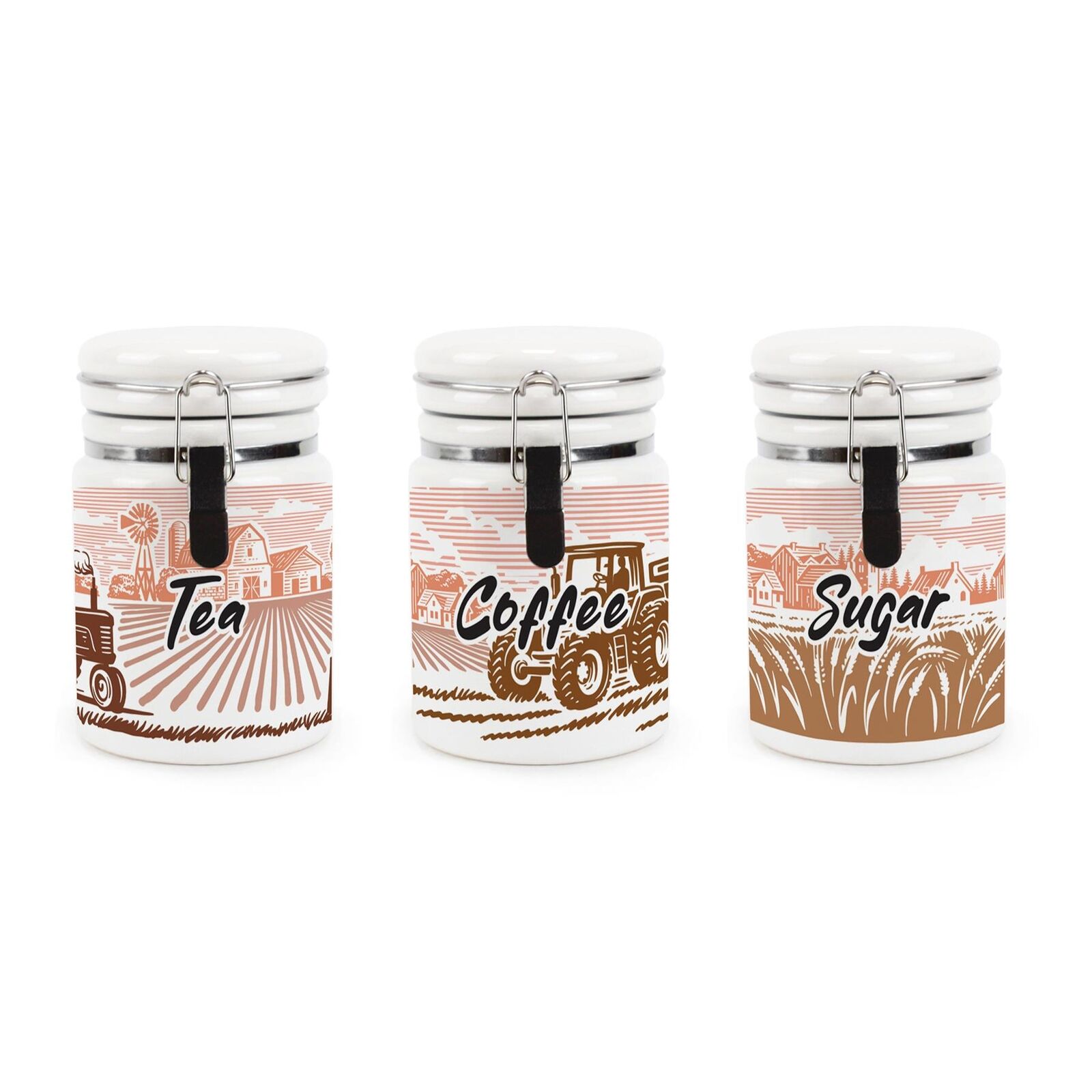 Ceramic Clip-Lid Rural Landscapes Canisters - Tea, Coffee & Sugar Containers