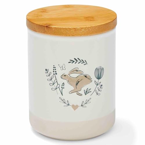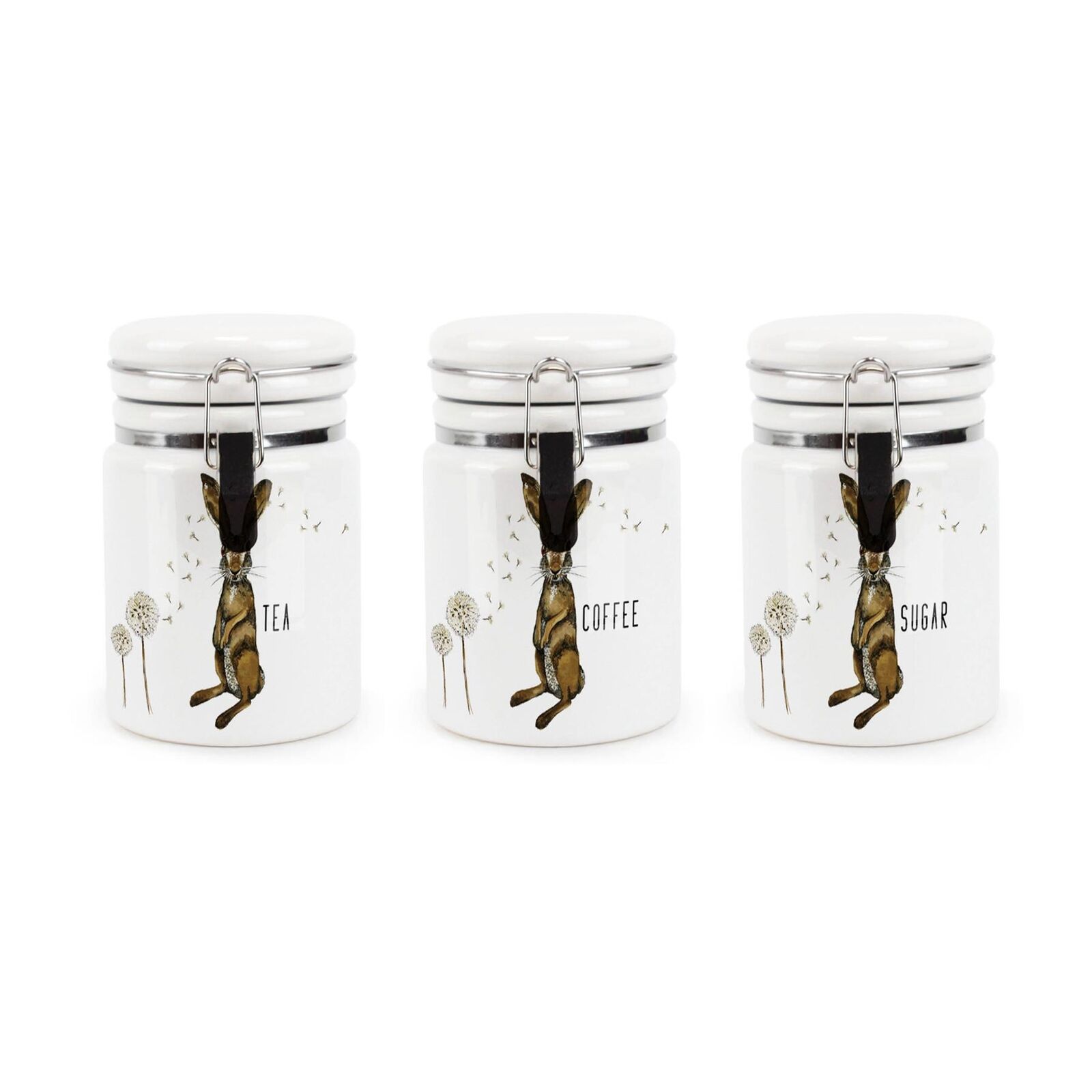 Ceramic Clip-Lid Hare & Dandelions Canisters - Tea, Coffee & Sugar Containers