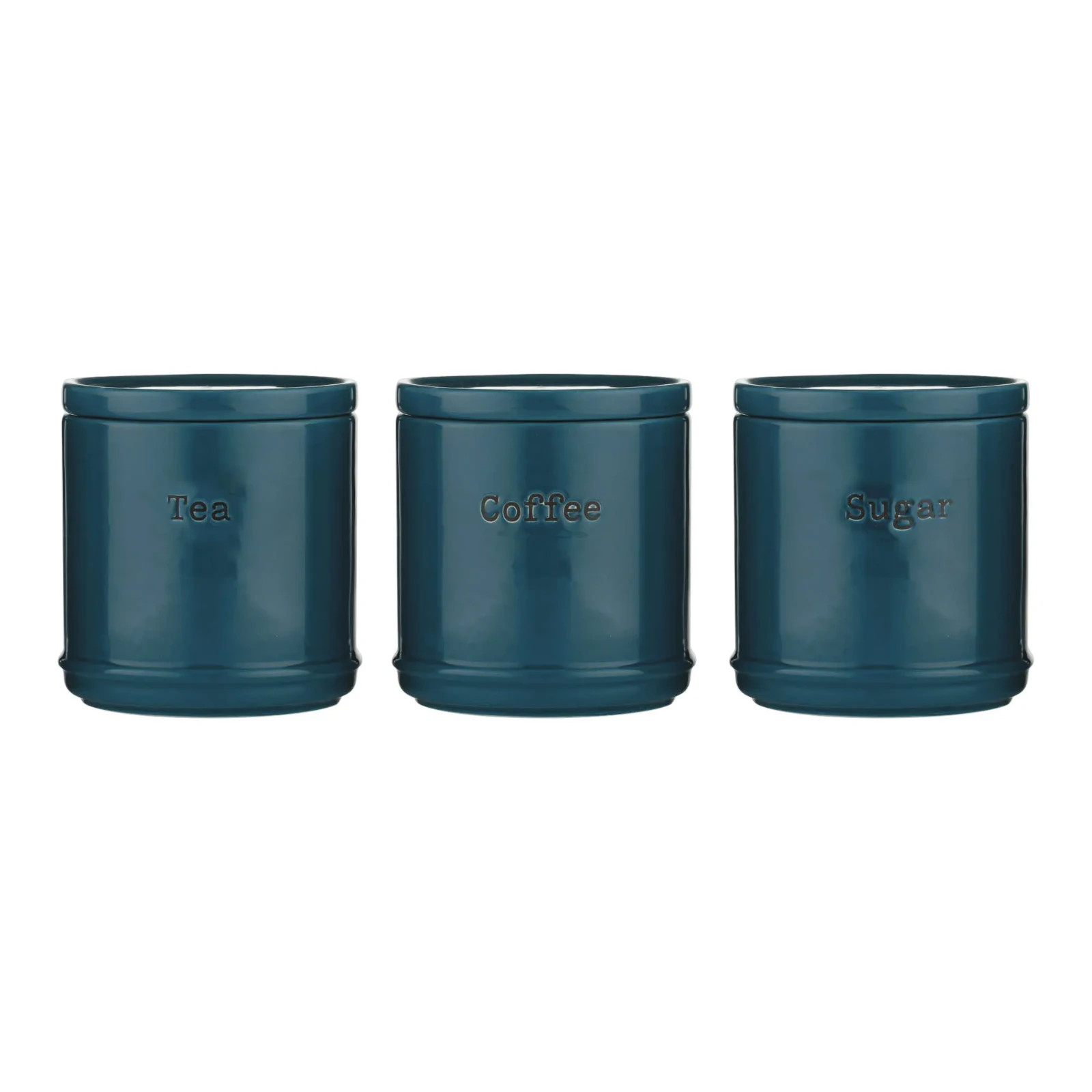 Price & Kensington Accents Tea Coffee Sugar Embossed Ceramic Canisters Set Teal