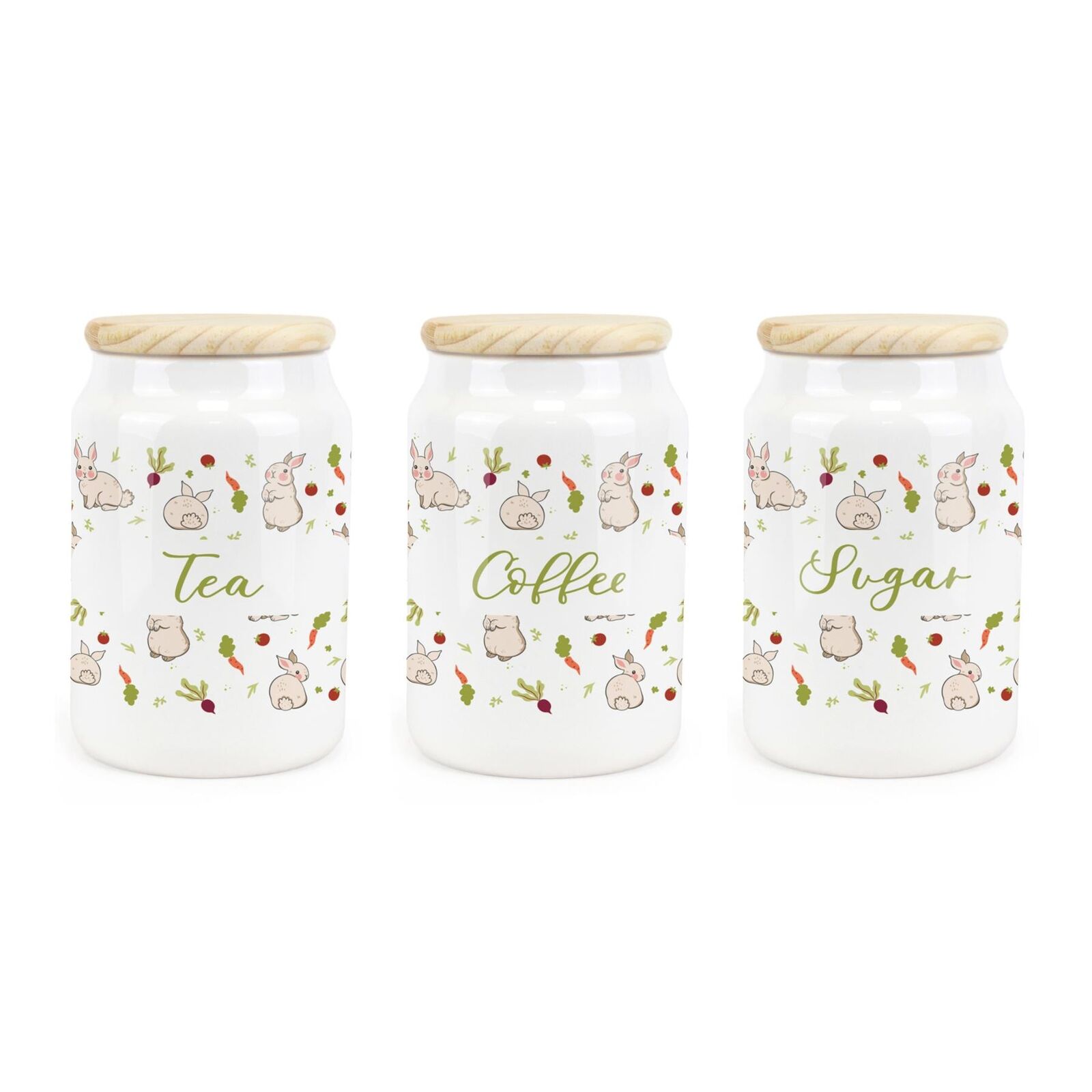 Ceramic Tapered Veg Patch Rabbits Canisters - Tea, Coffee & Sugar Containers