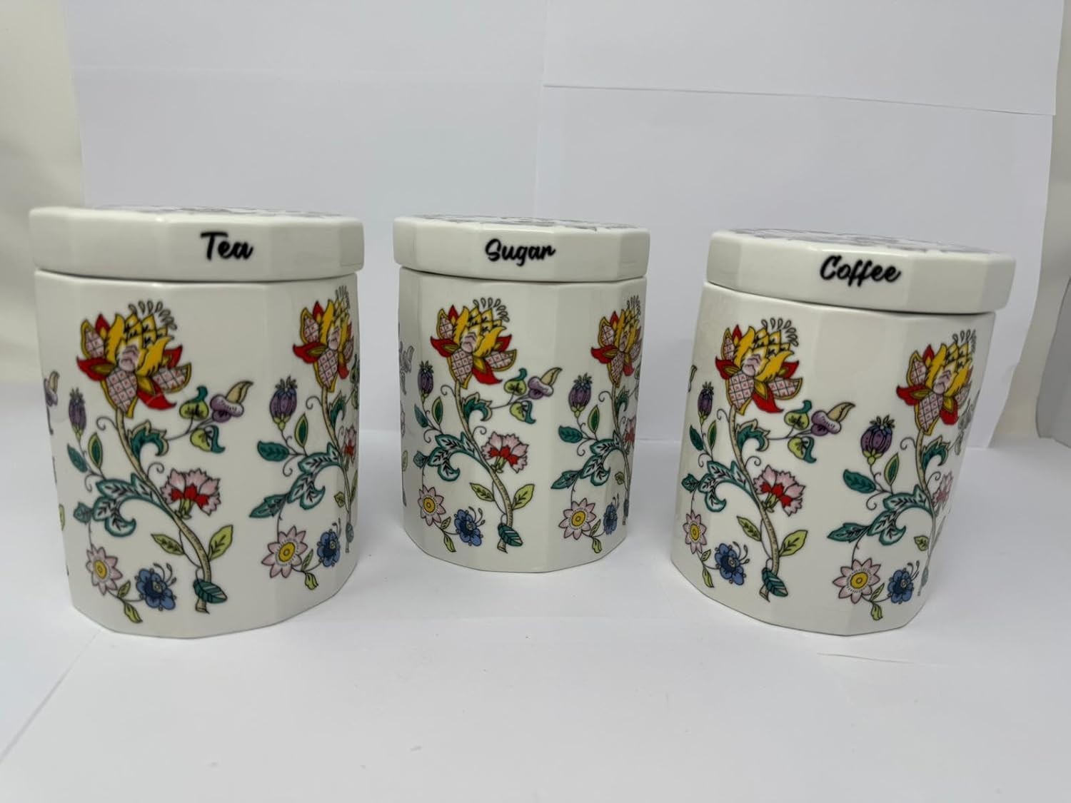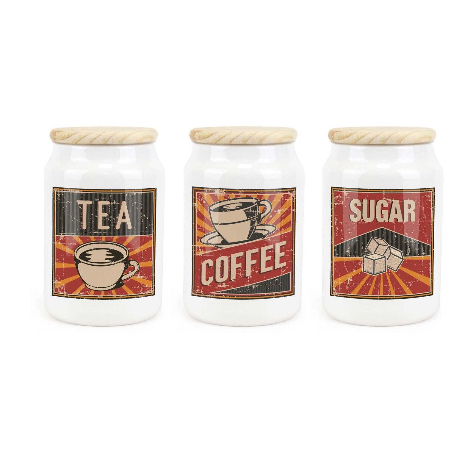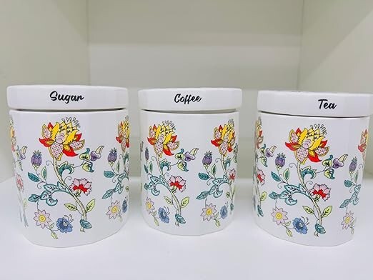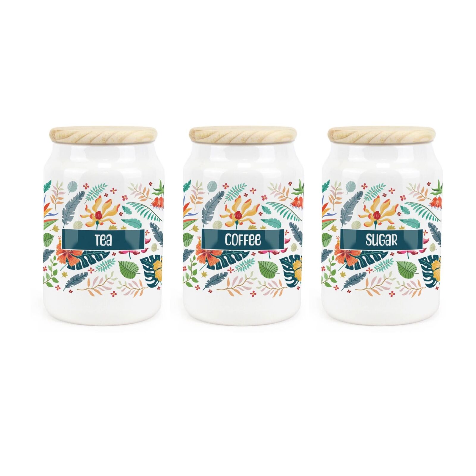 Cooksmart Ceramic TCS Canister | Tea Coffee Sugar Canisters For All Type Of Kitchens | Coffee And Tea Storage Jars With Modern Designs - English Meadows