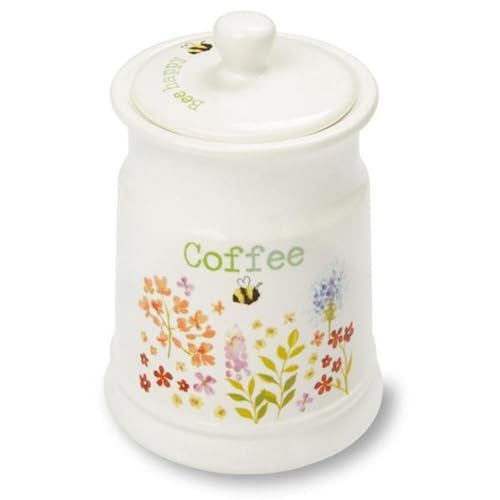 Cooksmart Ceramic Coffee Canister | Tea Coffee Sugar Canisters For All Type Of Kitchens | Coffee And Tea Storage Jars With Modern Designs - Bee Happy