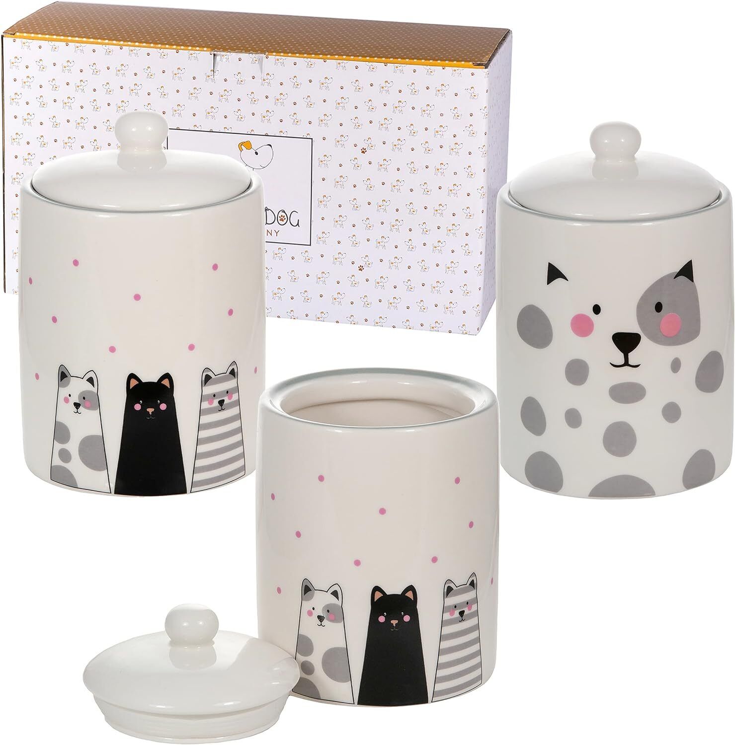 SPOTTED DOG GIFT COMPANY Tea Coffee Sugar Canisters, Set of 3 Ceramic Food Stor