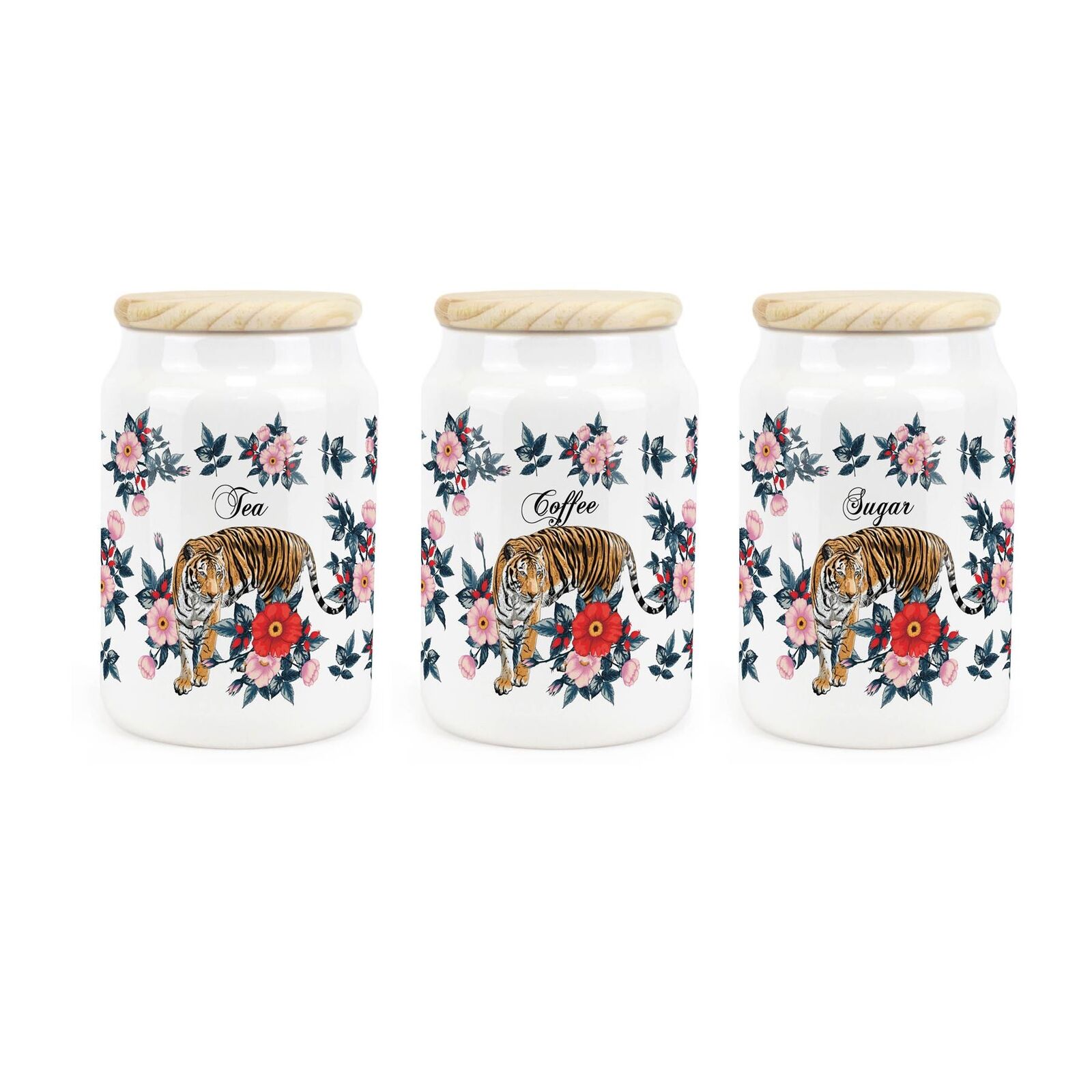 Ceramic Tapered Floral Tiger Canisters - Tea, Coffee & Sugar Storage Containers
