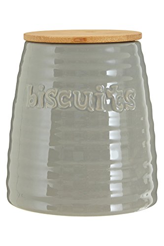 Premier Housewares Biscuit Ceramic Kitchen Storage Jars Grey Cookie Jars for Biscuits Canisters for The Kitchen Tea Coffee Sugar Tea Coffee and Sugar Canisters