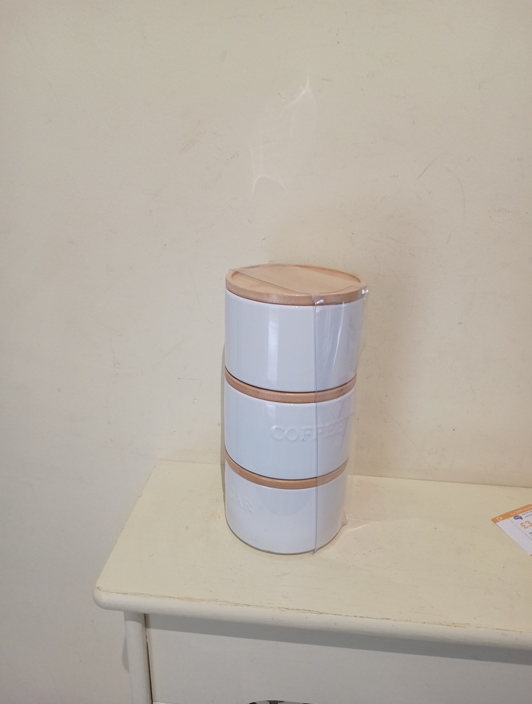 Homestore Stackable Ceramic Tea Coffee Sugar Canisters With Wooden Lid Storage