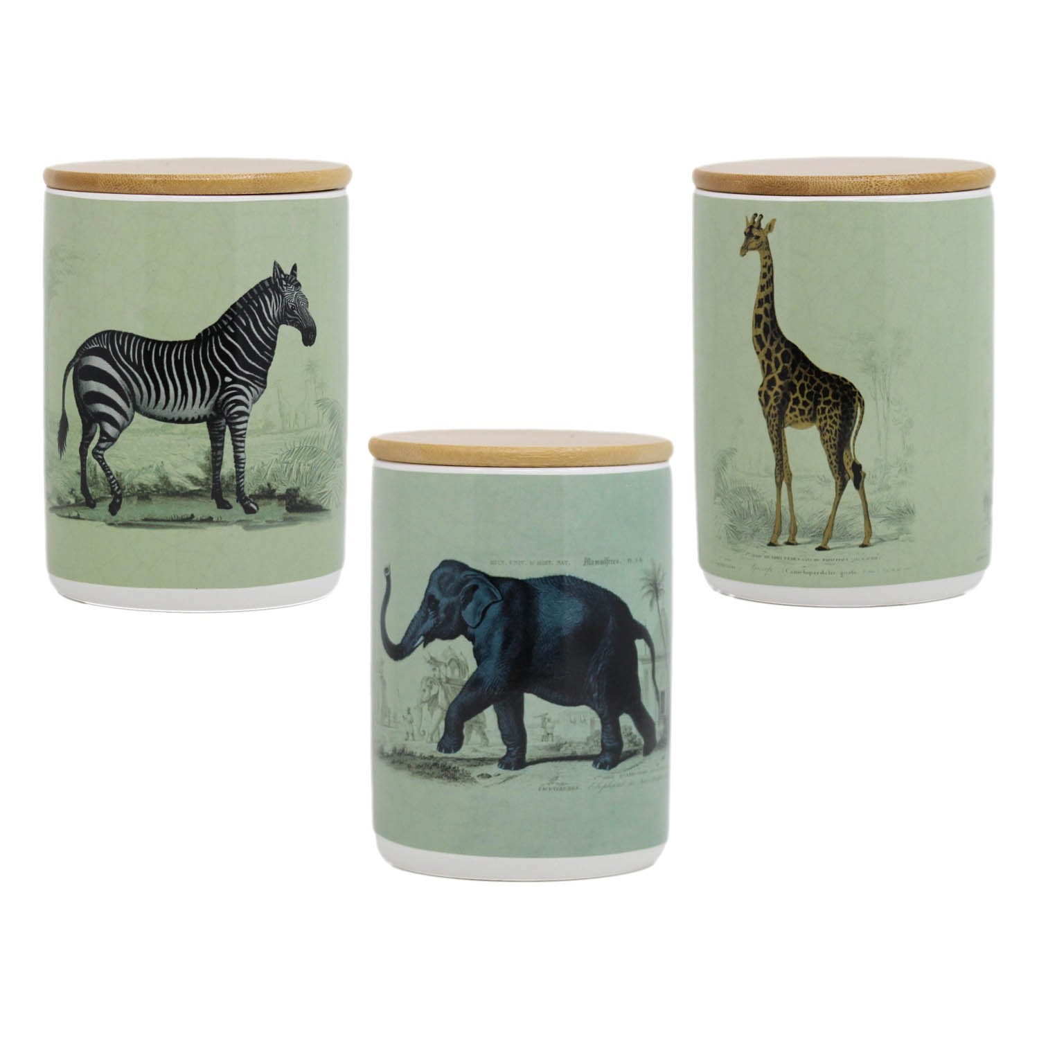 Set of 3 Storage Jar Vintage Safari Animals Tea Coffee Sugar Ceramic Canisters