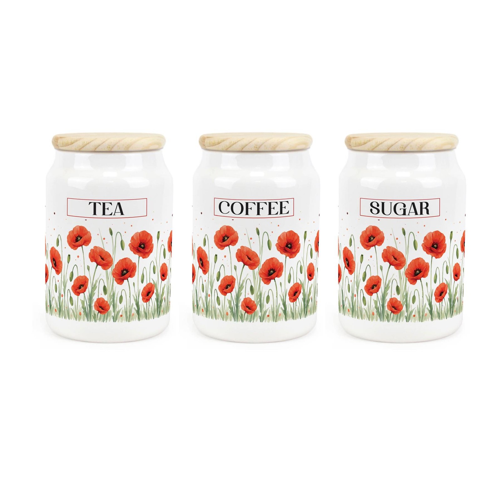 Ceramic Summer Poppies Tea, Coffee & Sugar Canisters - Floral Kitchen Containers