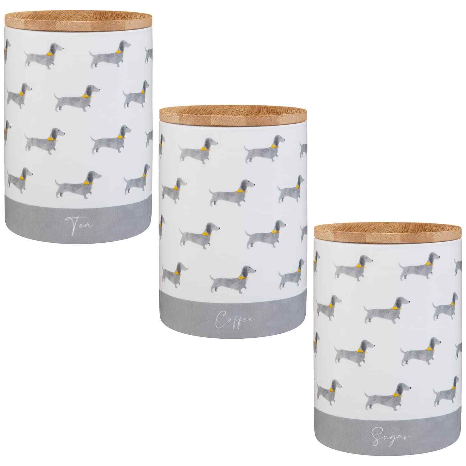 Set Of 3 Ceramic Tea Coffee Sugar Canisters Jars Sausage Dog Storage Jars Pots