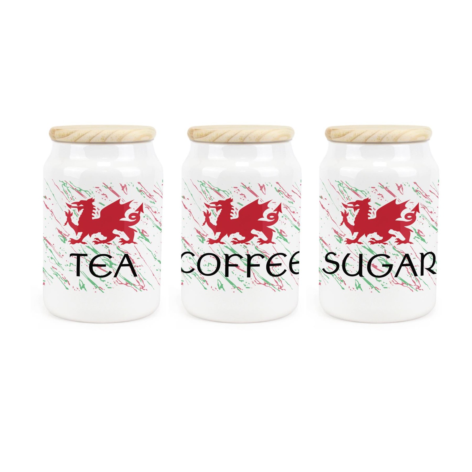 Ceramic Welsh Dragon Tea, Coffee & Sugar Canisters - Drinks Storage Container