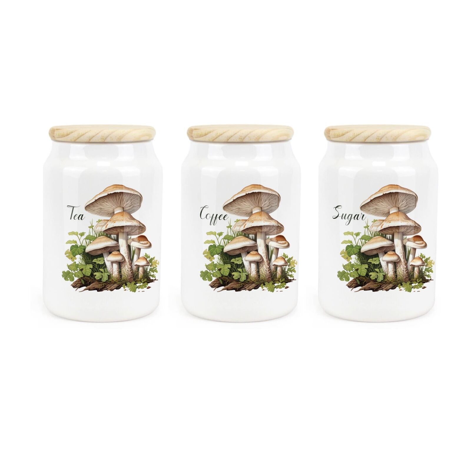 Ceramic Tapered Mushrooms Canisters Set - Tea Coffee Sugar Storage Jars